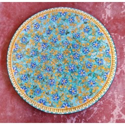 Tavolo Tondo in Pietra Lavica Misura diametro 120 cm Decoro " Ornato Giallo e Blu..