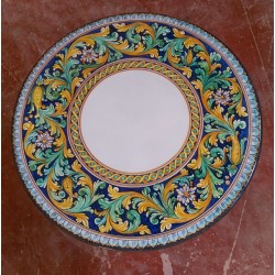 Tavolo Tondo in Pietra Lavica Misura diametro 110 cm Decoro " Ornato Giallo e Blu..